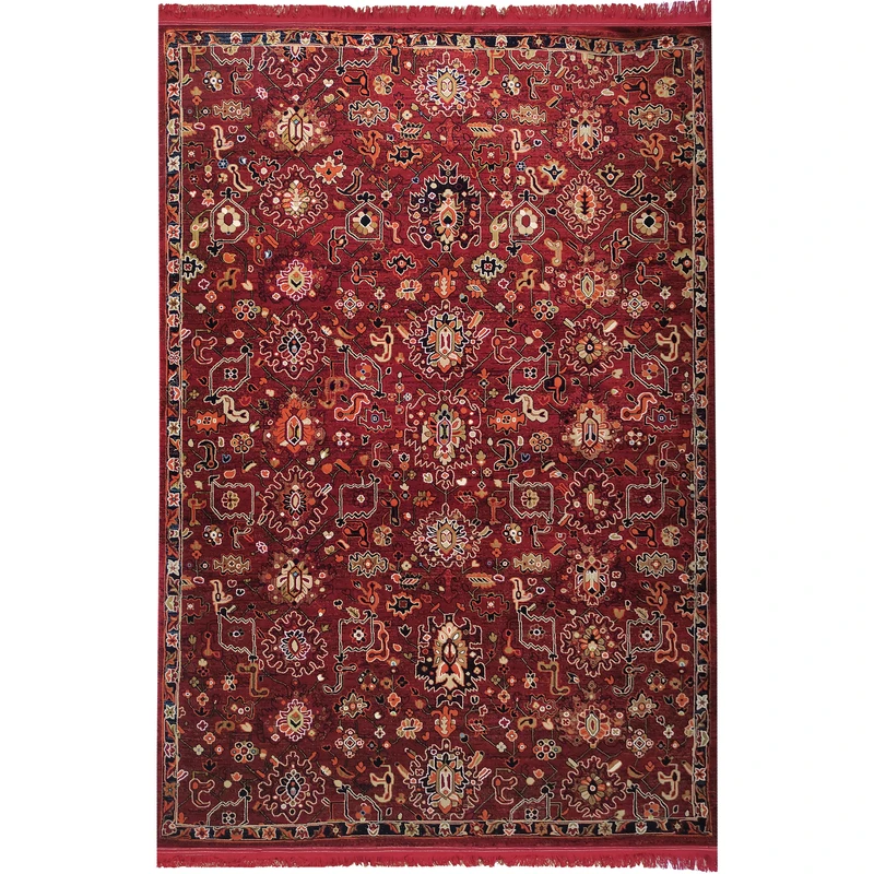 A richly detailed hand-knotted Persian rug with a deep red field and classic medallion design.