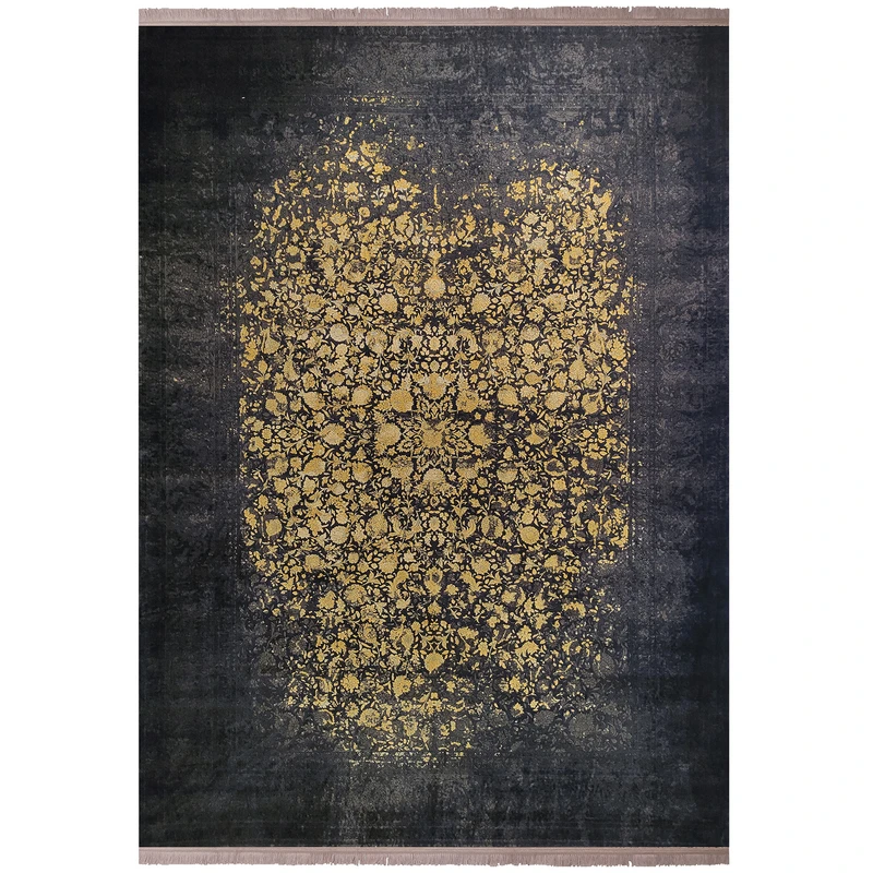 Elegant oriental pattern in deep navy and gold, ideal for living rooms and dining areas.