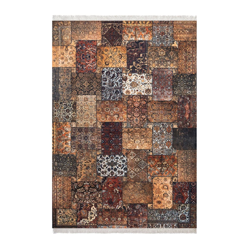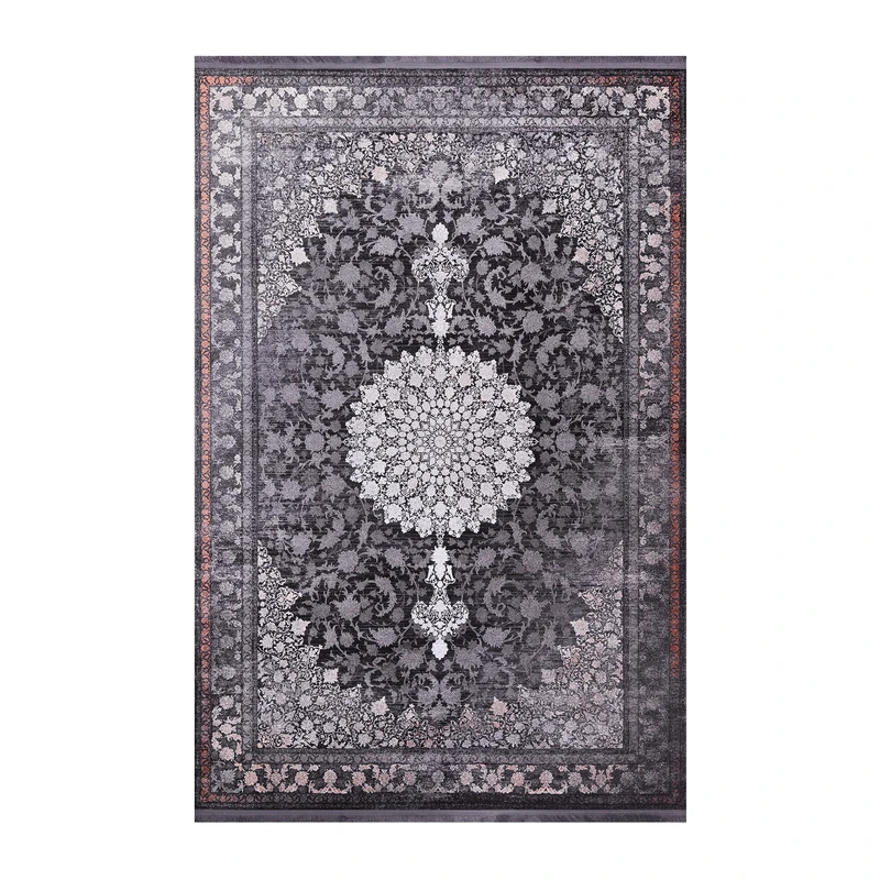 Warm rust-coloured rug with a bold medallion, great for open-plan living areas.